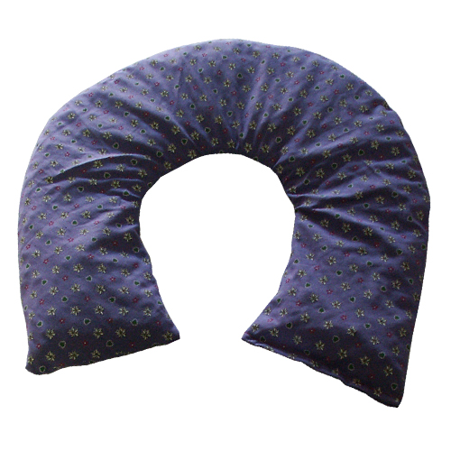 Fascia trapuntata ai noccioli di ciliegia, con fodera blu e fantasia di decori alpini, ottimo rimedio per rilassare e allentare le tensioni muscolari, distorsioni, contusioni e dolori alla colonna vertebrale.